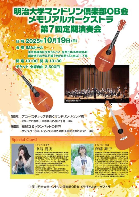 【10/19(日)】「明治大学マンドリン倶楽部OB会メモリアルオーケストラ第7回定期演奏会」開催!