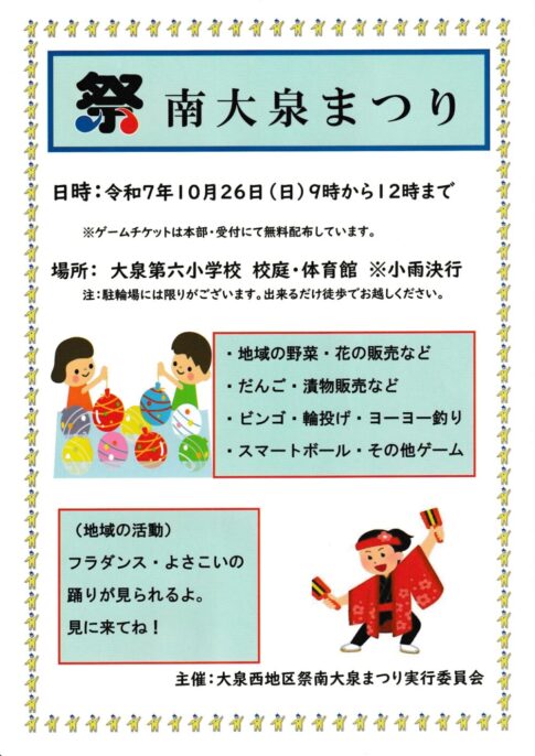 【10/26(日)】「2025南大泉まつり」開催!