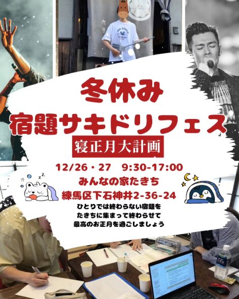 【12/26(金)・27(土)】「冬休み宿題サキドリフェス〜寝正月大計画〜」開催!