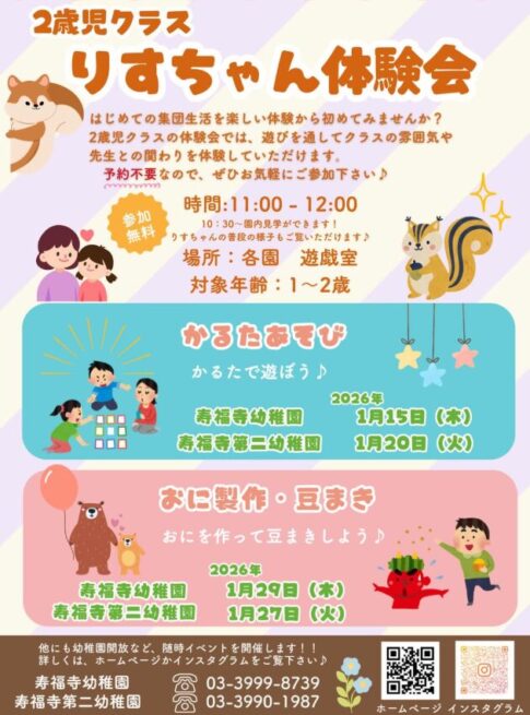【1/15(木)・20(火)・27(火)・29(木)】「りすちゃん体験会」開催!