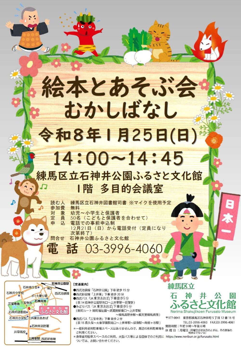 2026年1月25日(日)「絵本とあそぶ会」が石神井公園ふるさと文化館で開催されます!