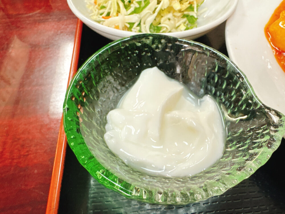 食後の杏仁豆腐はツルッと口当たりなめらかで、口の中をさっぱりとリセットしてくれます。