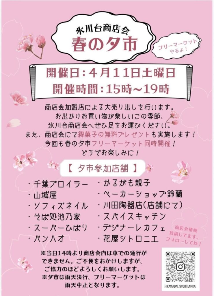 2026年4月11日(土)「春の夕市&フリーマーケット」が氷川台商店会で開催されます!