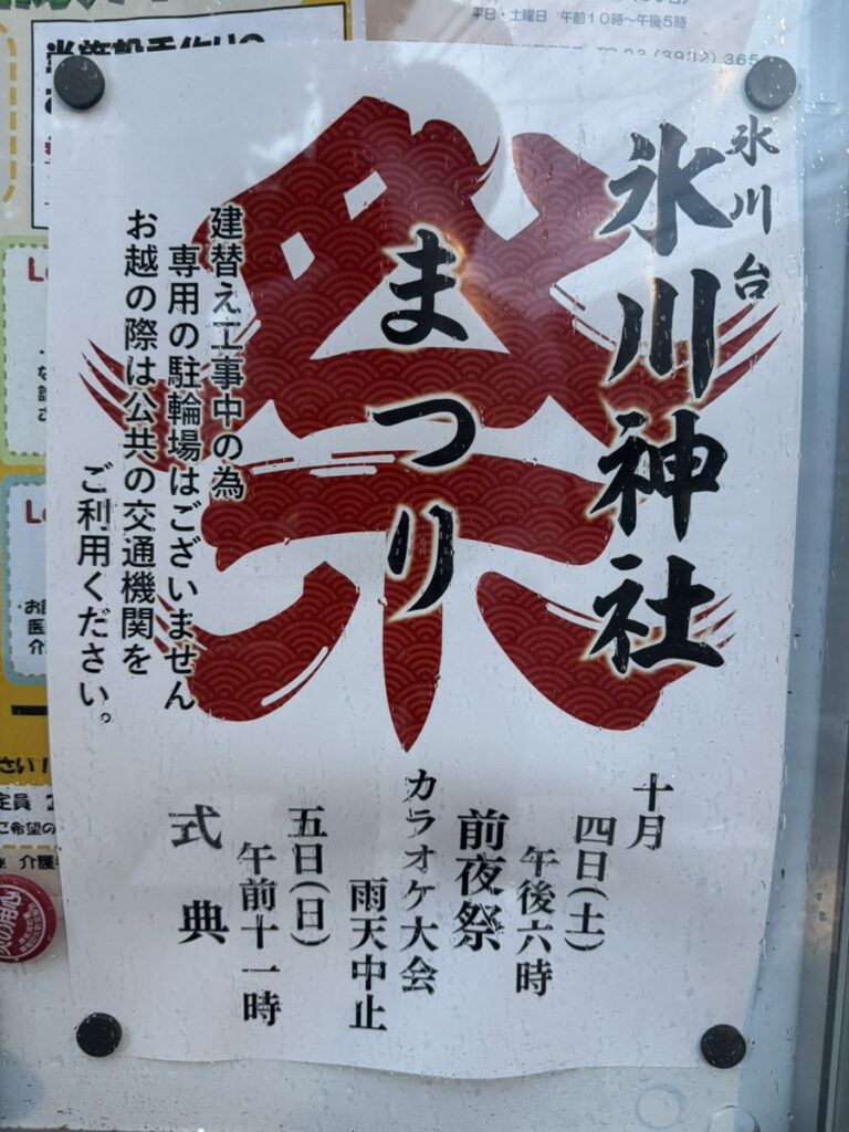2025年10月4日(土)5日(日)氷川台氷川神社で祭が開催されます!