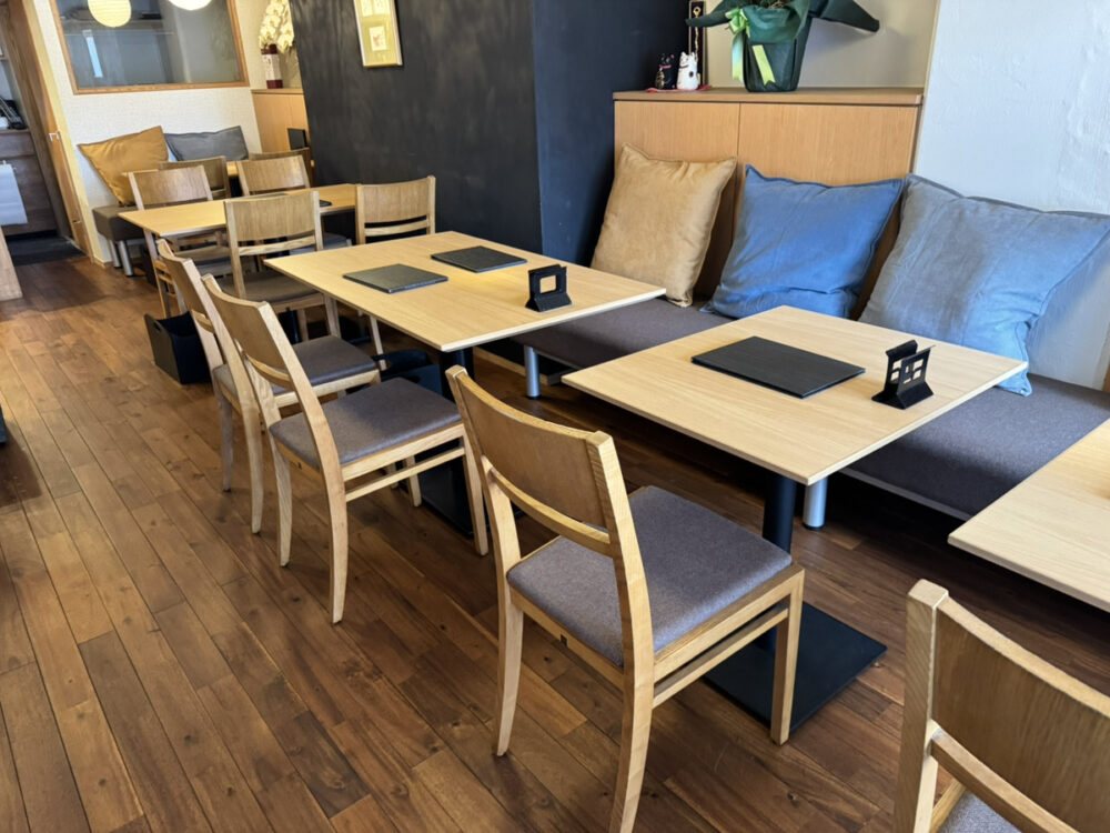 壁際にはクッション付きのベンチシートもあり、居心地の良さが抜群です。