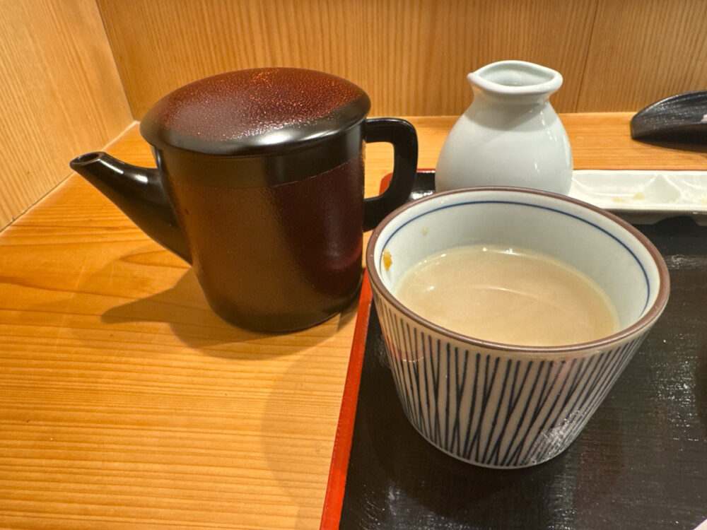食後には蕎麦湯でほっと一息。手打ち蕎麦の美味しさをじっくりと堪能できます。