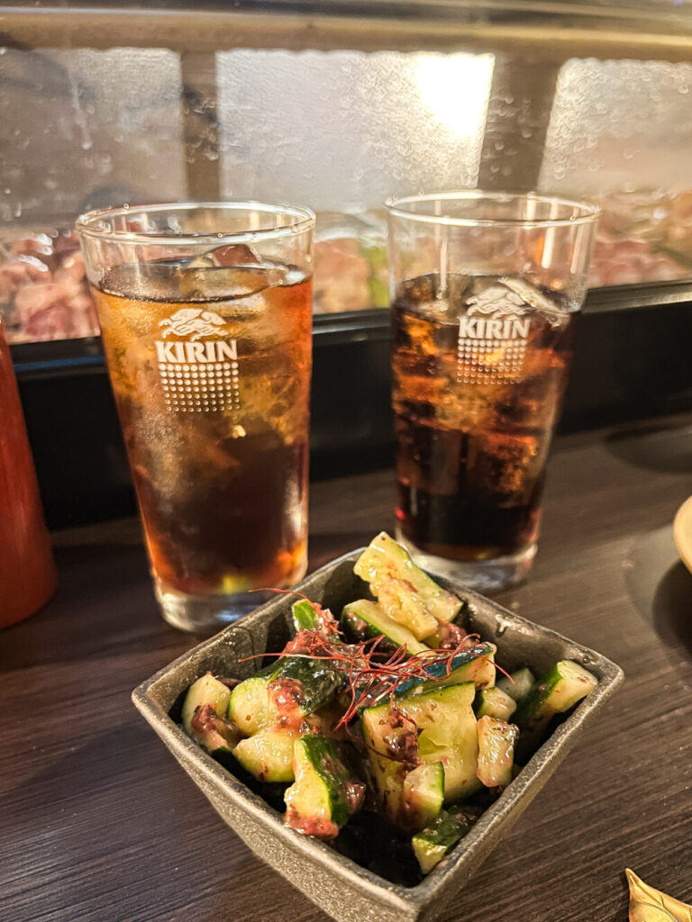 最初に注文したのは「たたききゅうり梅肉和え」。