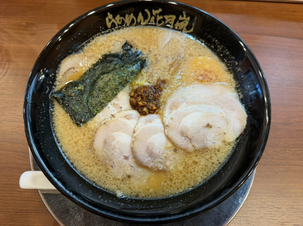 今回は、お店の人気No.1メニュー「嵐げんこつらあめん」の豪華版、「嵐げんこつチャーシューメン(税込1,180円)」を注文しました。