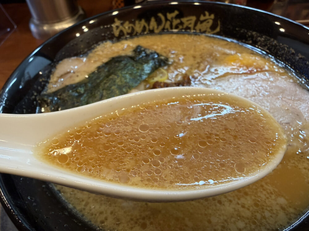 背脂が浮いた秘伝のスープは、パンチがありながらもクセになる味わい。