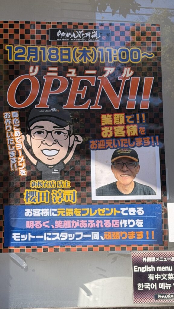 2025年12月18日(木)らあめん花月嵐 新桜台店がリニューアルオープンします!