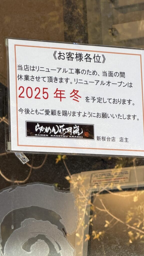 長らく休業していたらあめん花月嵐 新桜台店がリニューアルオープンするようです。