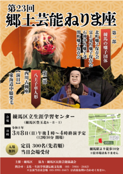 2026年3月8日(日)「第23回郷土芸能ねりま座公演」が練馬区立生涯学習センターで開催されます!
