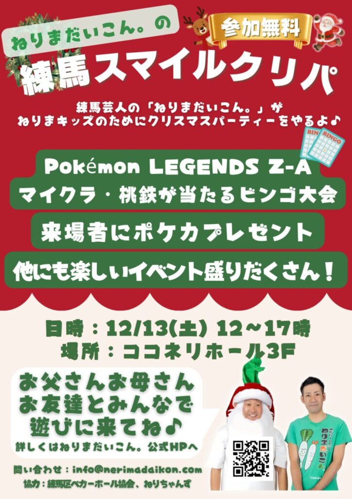 2025年12月13日(土)「ねりまだいこん。の練馬スマイルクリパ」が練馬区立区民・産業プラザ ココネリホールで開催されます!