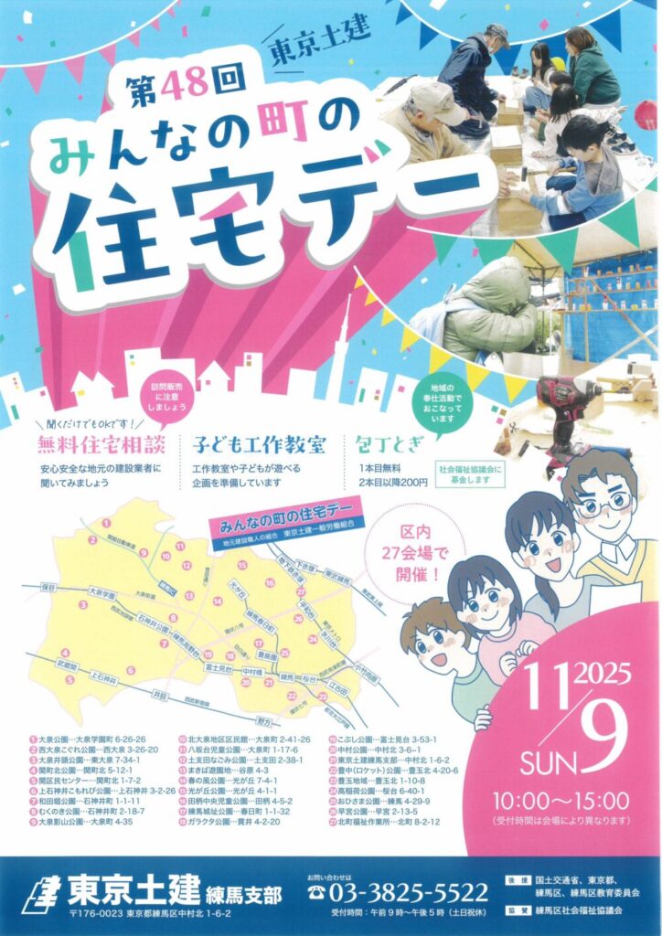 2024年11月9日(日)第48回東京土建「ねりま住宅デー」が区内27会場で開催されます!