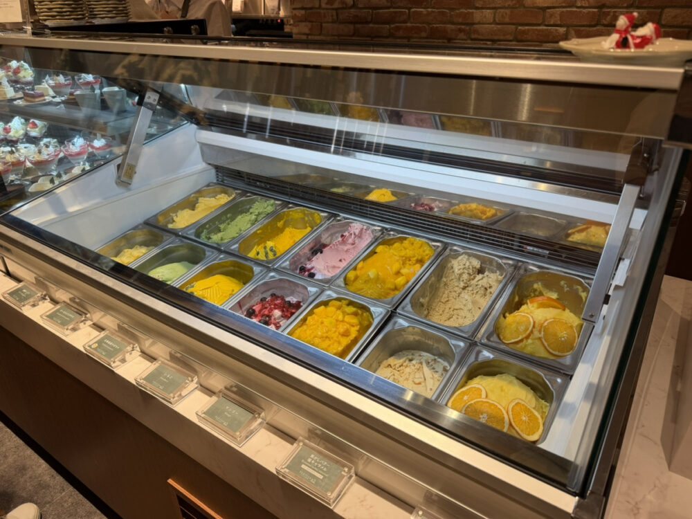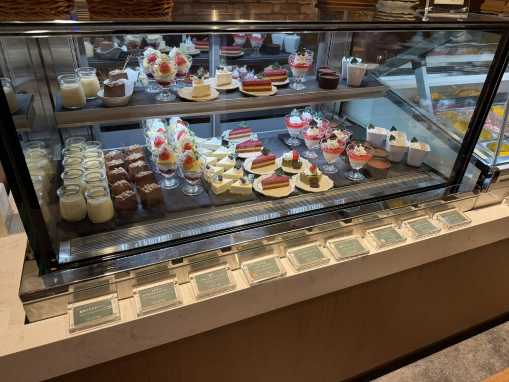店内に入るとまず、デザートのショーウィンドウが現れます。