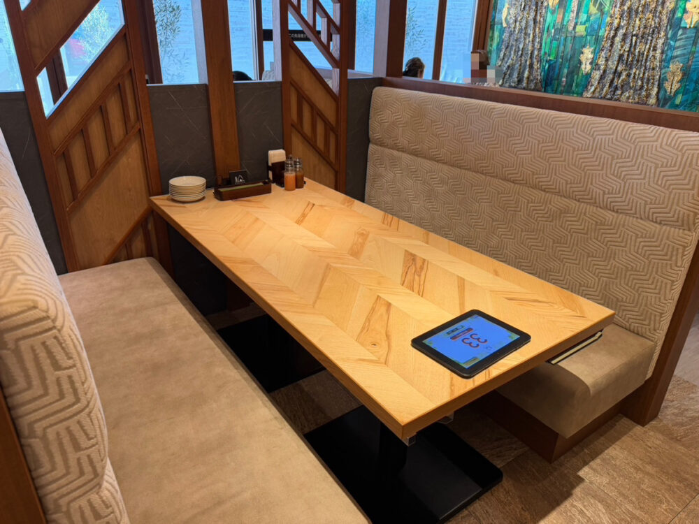 充実したドリンクバーの目の前を通り過ぎ、席に到着します。