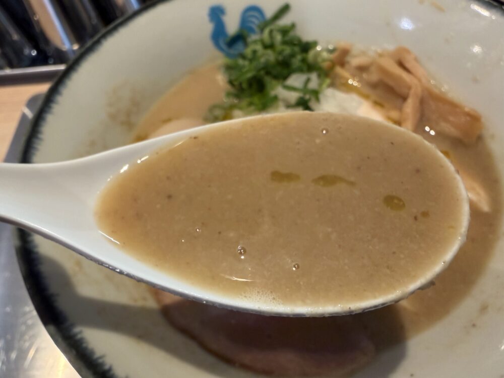 スープは、粘度高めで、クリーミーで濃厚な鶏の旨味が口いっぱいに広がり、その後にトリュフの芳醇な香りが鼻を抜けていきます。